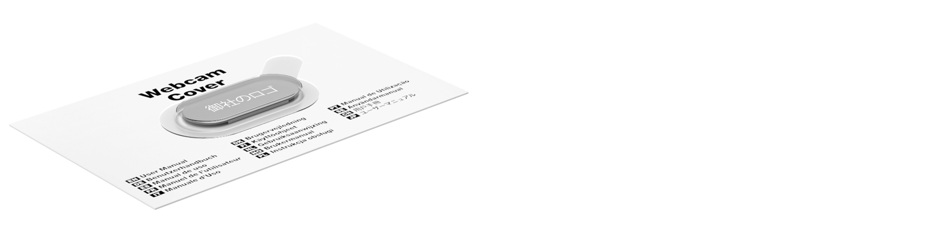 名入れウェブカメラ・カバーのパッケージ用のアクセサリです。カードの両面に名入れ印刷ができ、カンファレンスなどのイベント会場で配布される際には、その目を引き付けるデザインで注目を集めるでしょう。ウェブカメラカバーは、プラスチック製のブリスターに収まってしっかりと固定されますが、取り出し時にはプラスチック部分を簡単に剥がせる仕組みになっています。