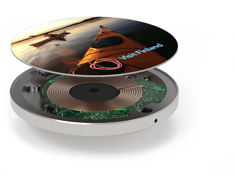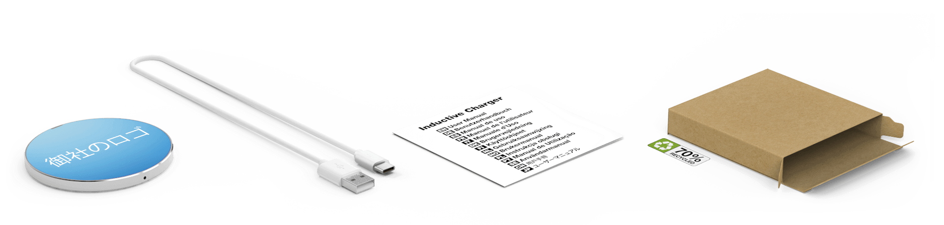 マグネットボックス(ワイヤレス充電器)には商品の形状に合わせたスポンジ状クッションが入っており、しっかりと商品を固定することができます。フタ部分のマグネットにより簡単に開閉できます。フタ部分にはスクリーン印刷にて御社のロゴやURLなどを印刷することが可能。カンファレンスやイベント時にぴったりのアクセサリです。